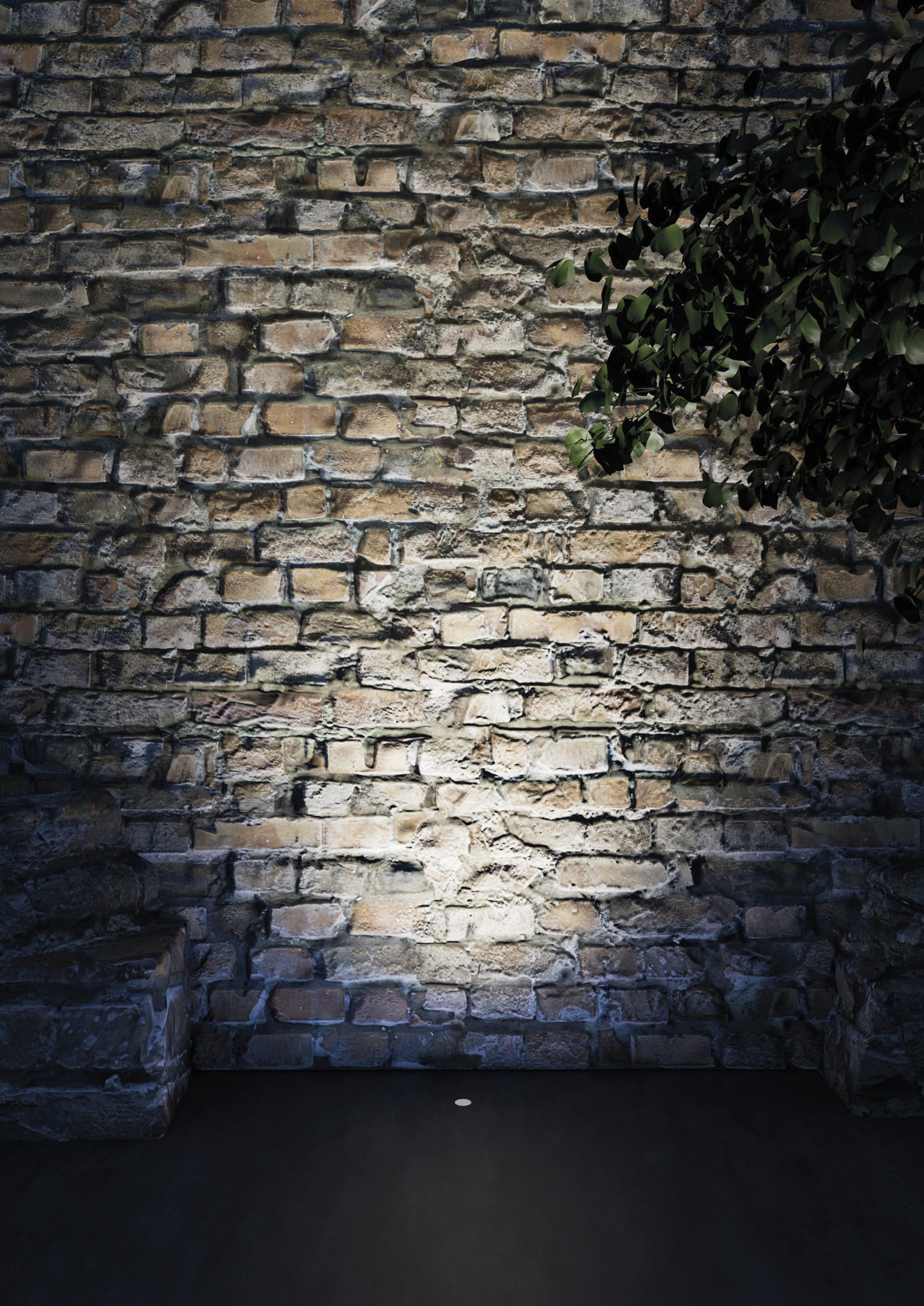 Recessed, floor uplight with the idea that a small black dot reveals its function only when necessary. Trim or Trimless available. Spot version available with optional accessories - wall, ceiling, or spike.